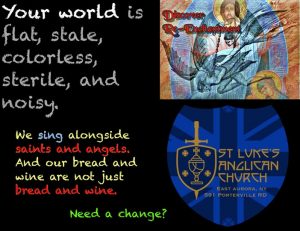 St Luke’s Anglican Church is part of the Diocese of All Saints, Anglican Church in North America. We are a small church located in East Aurora, NY, currently sharing space with the First Baptist Church on Porterville Road. The Traditional Language Edition of the 2019 Book of Common Prayer is used for our worship services.